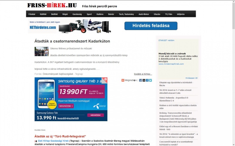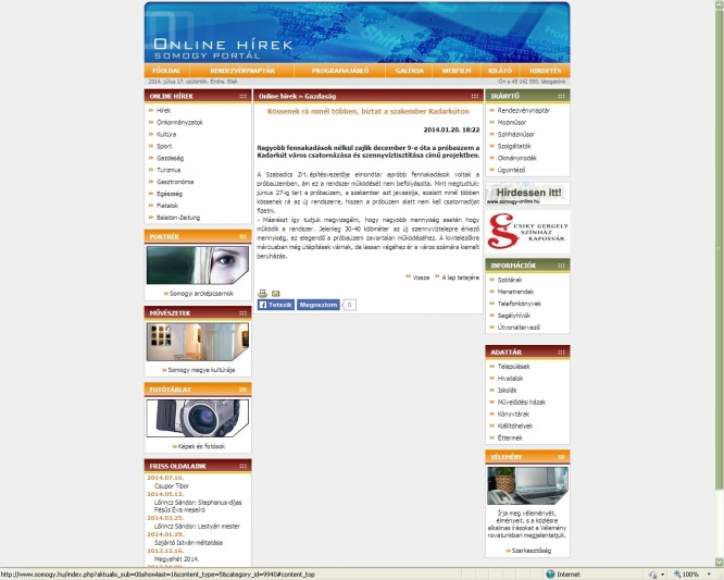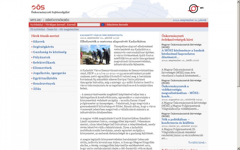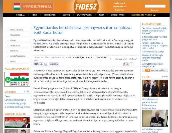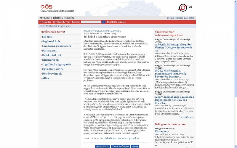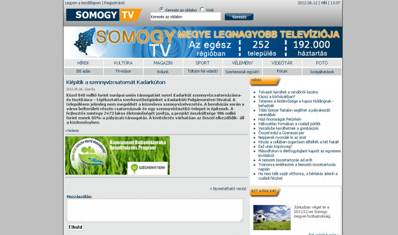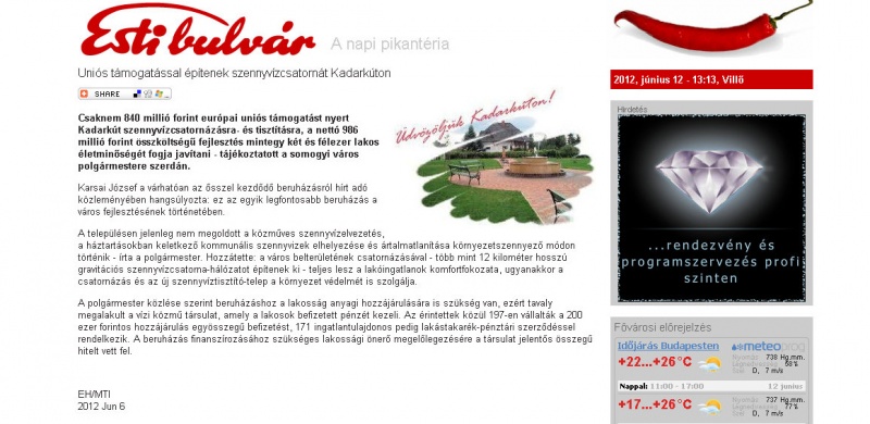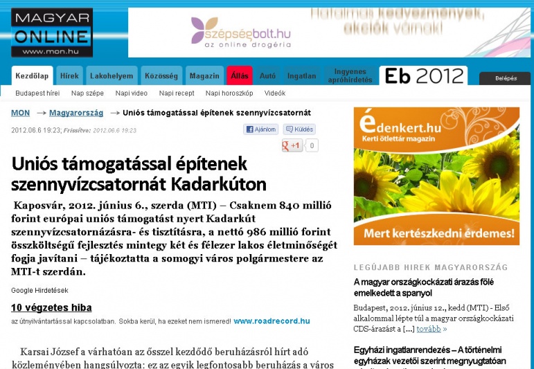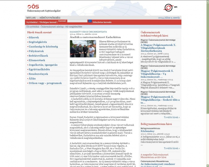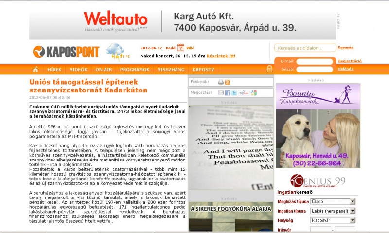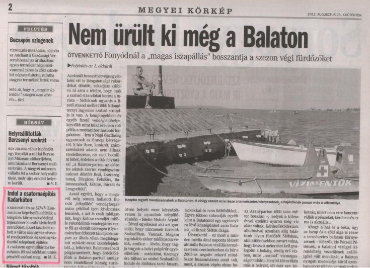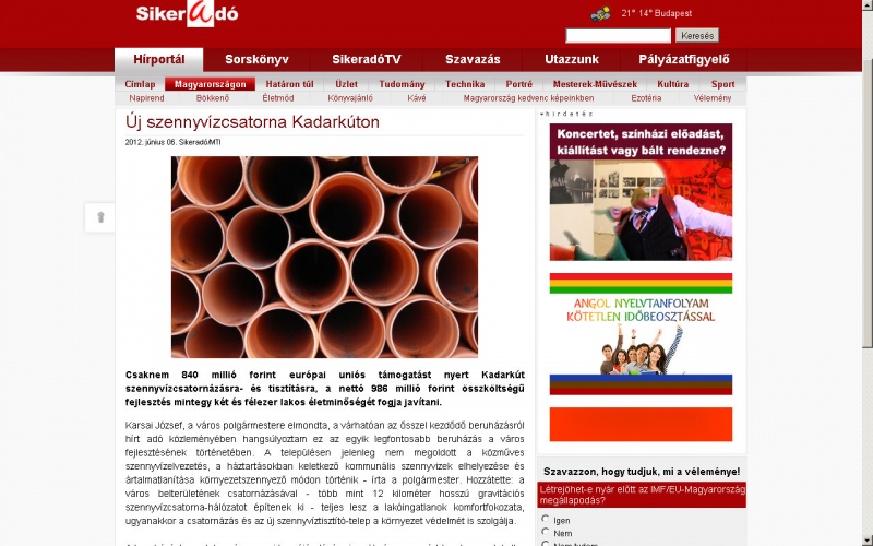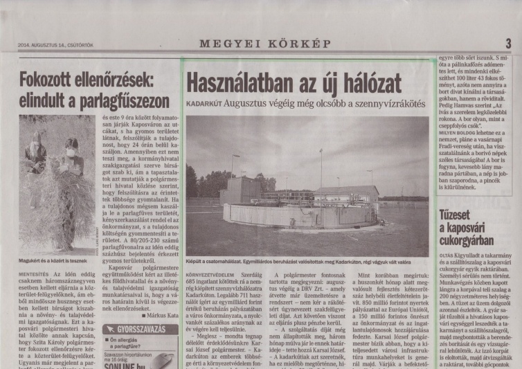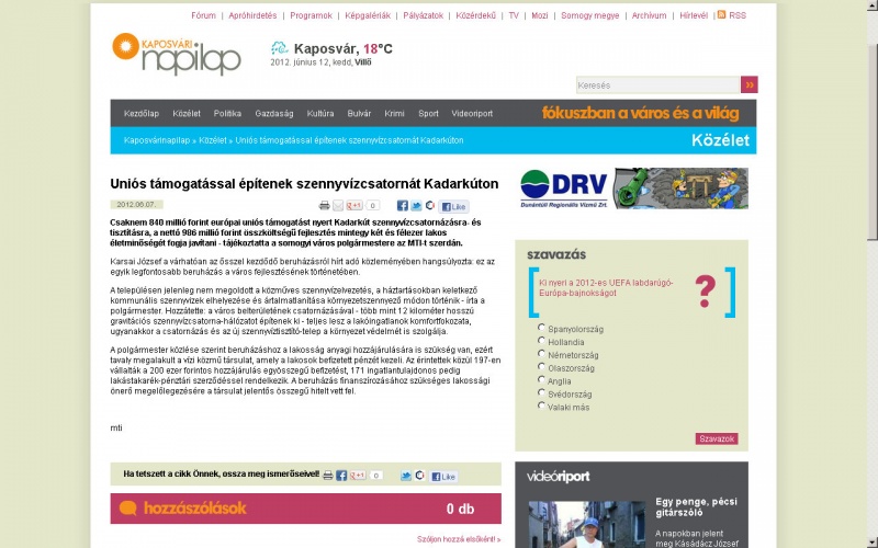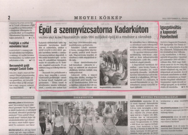 Kadarkút város szennyvízcsatornázása és szennyvíztisztítása