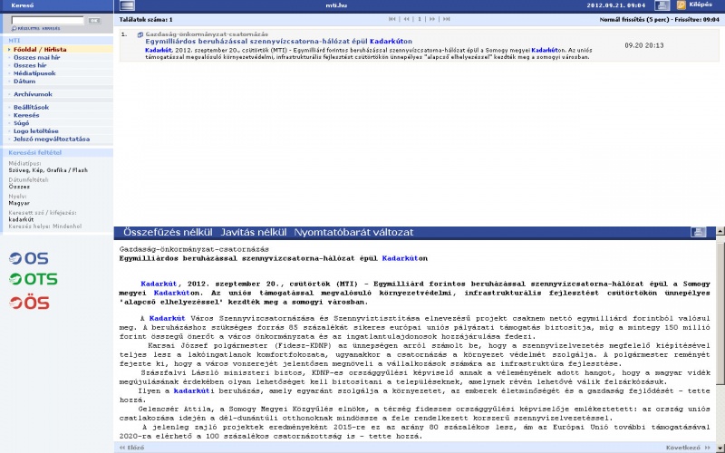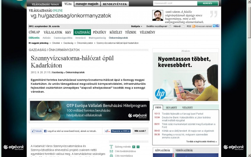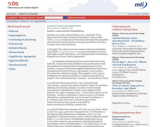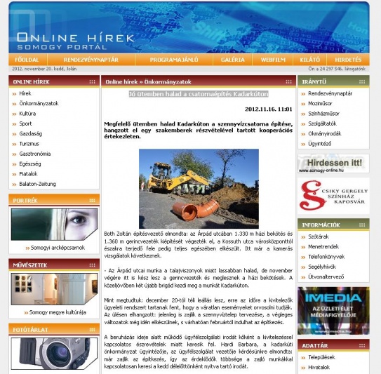 Kadarkút város szennyvízcsatornázása és szennyvíztisztítása