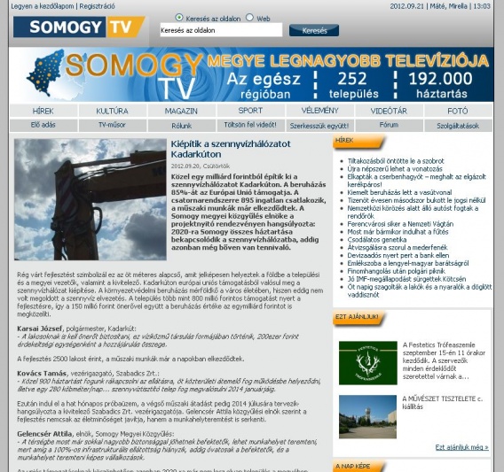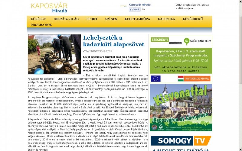 Kadarkút város szennyvízcsatornázása és szennyvíztisztítása